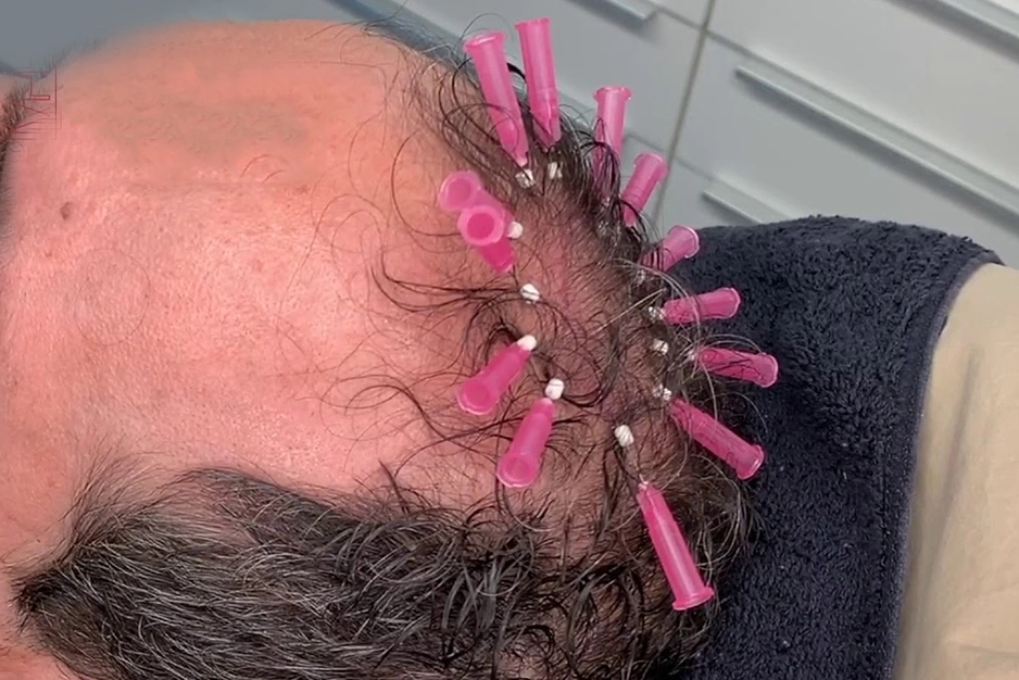 PDO (Polydioxanone) threads are the latest innovation in non-surgical hair restoration. These fine medical-grade threads are inserted into the scalp to stimulate collagen production and improve blood flow to hair follicles. The result? Stronger roots, faster regrowth, and improved scalp health over the following months. PDO thread therapy is ideal for patients looking for visible improvement without surgery.